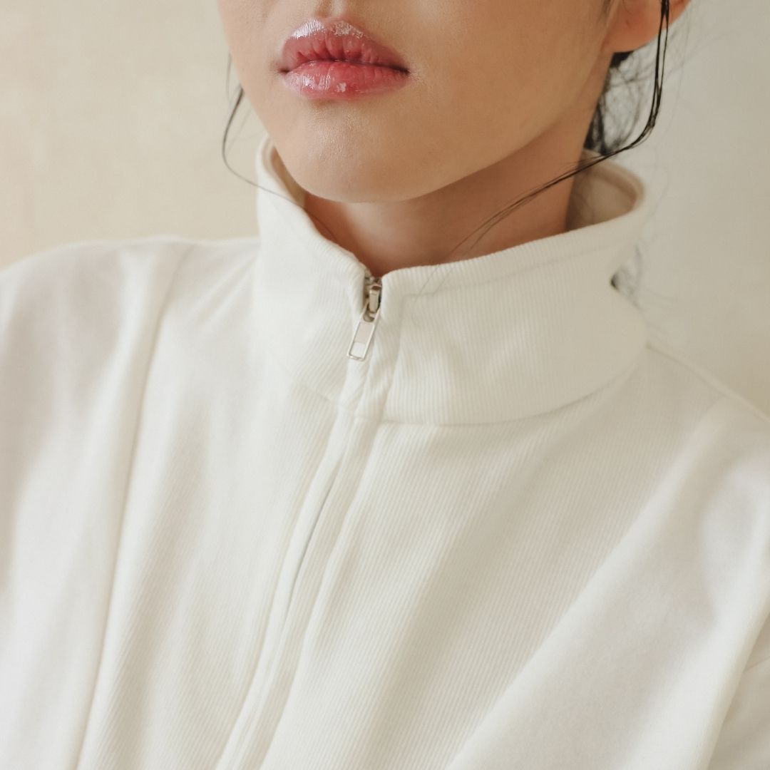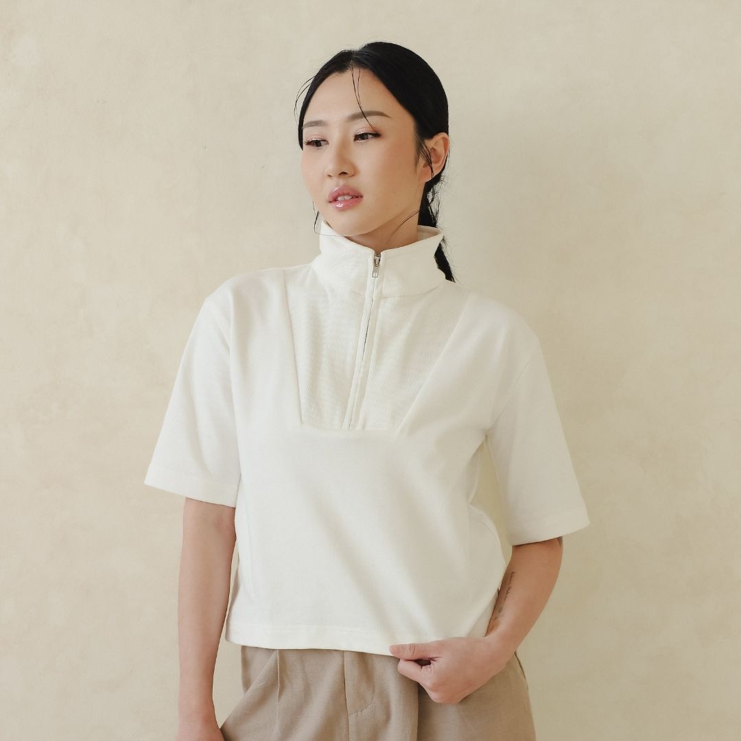 - Bagian dada dan kerah memakai bahan rib, untuk memberi kesan model yang stylish